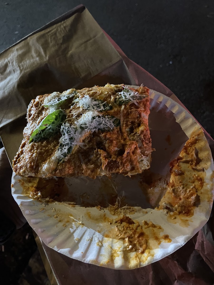 I tried the chicken sandwich and the cheesesteak—both are absolutely incredible—but the steak sandwich is an absolute must. You’ll never taste anything like it anywhere else. The pizza slice is on another level: perfectly crispy crust, insanely flavorful—I’ve honestly never had pizza like this before. And the Cacio e Pepe? Hands down the winner.