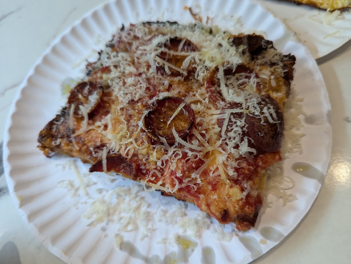 One of the best square pizzas in NYC. The crust is just perfectly crispy but still soft in the middle, and definitely not too hard or crunchy like some other places. The vodka sauce slice was super saucy and delicious. The standout though was the bufalina - which was also super saucy but sooo flavorful and loaded with chicken. Also love that they topped the vodka with some fresh basil + grated cheese and the buffalo with scallions after reheating. Definitely on the pricier side, but in my option, totally worth it. If you can, try to come at a less popular time/day so you don’t have to wait too long.